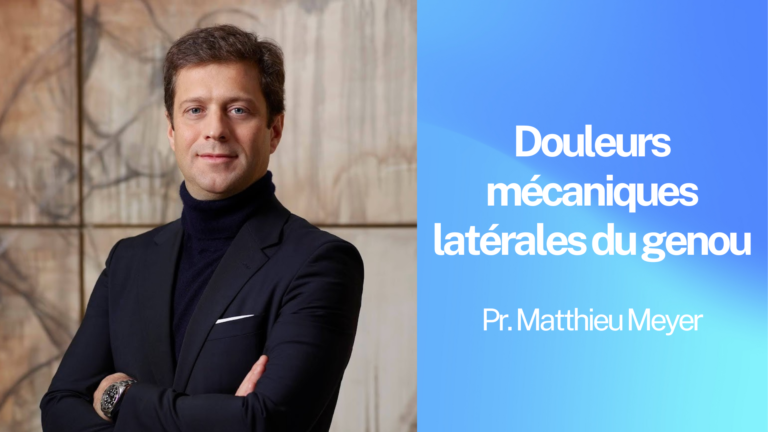 Présentation didactique du Dr Matthieu Meyer sur les douleurs mécaniques latérales du genou, Illustrant la présentation cliniqu...
