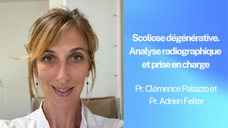 Présentation des Drs Clémence Palazzo et Adrien Felter sur la scoliose dégénérative, centrée sur son analyse radiographique et ...